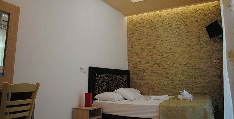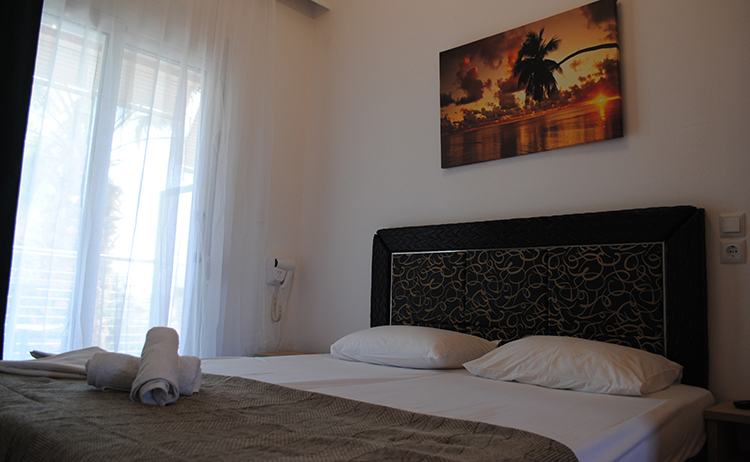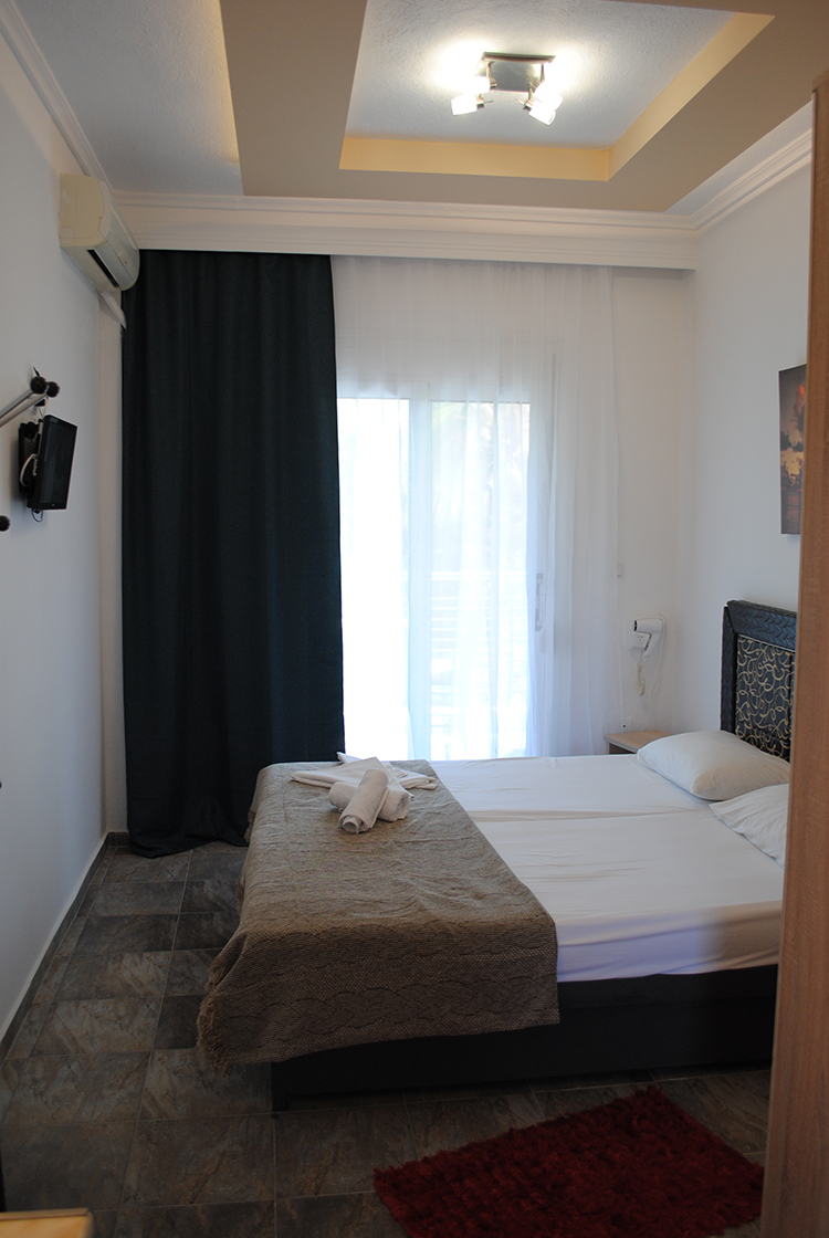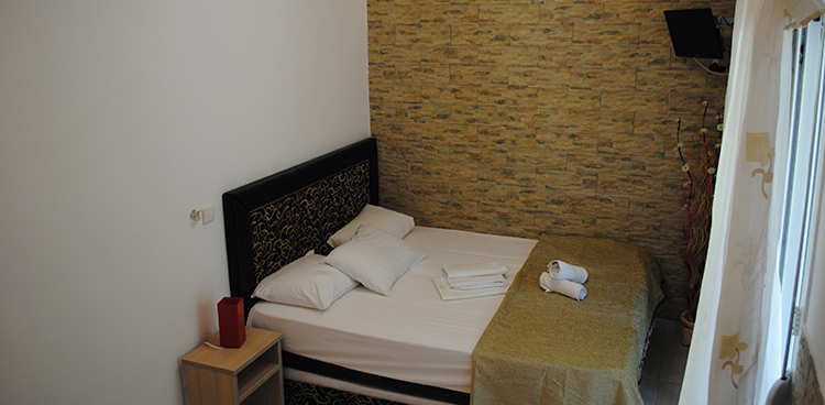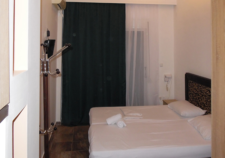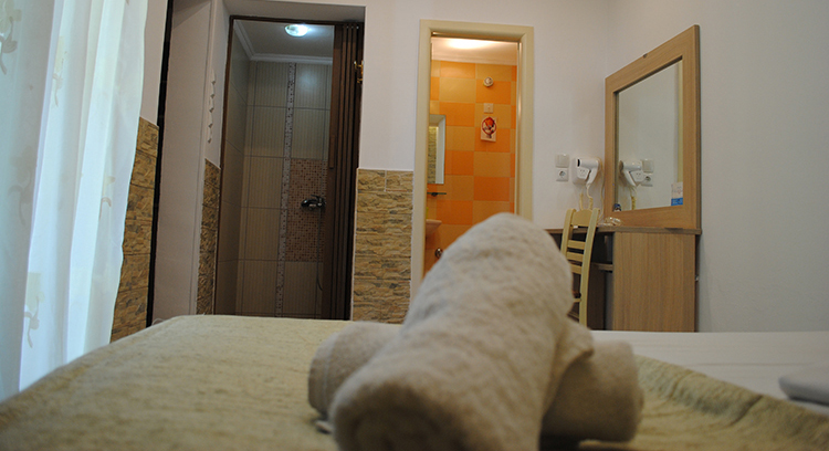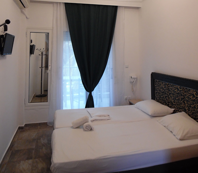 Most of our double rooms are on the ground floor (50cm above ground level). They have a view of the garden and it is in front of the playground like almost every one of our rooms. This room type has two single twin beds. Moreover, the room has a private bathroom with a shower. The balcony is spacious with direct access to the yard.